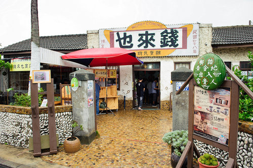 錢來也雜貨店原興建於民國41年, 為傳統斜瓦平房, 為早期台鹽鹽工福利社, 提供鹽工購買日常用品的場所及育樂中心, 至民國90年間台鹽在北門鹽場停止鹽業生產止.